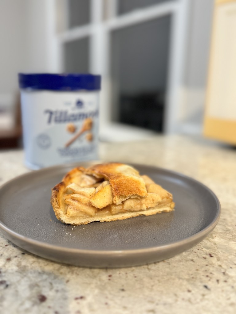 Quick homemade apple pie, served with vanilla ice cream.